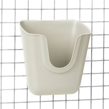 De voederbak is gemaakt van kunststof en heeft een robuuste constructie die zorgt voor een lange levensduur en betrouwbaarheid. Het kan gemakkelijk aan het rooster van het hok worden bevestigd. Dankzij de V-vorm kunnen de kippen bij het voer zonder het om te gooien of te verspillen.